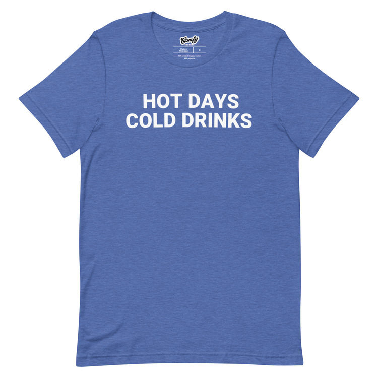 Stay cool and stylish with our Hot Days Cold Drinks Adult Unisex T-shirt! Made for both men and women, this shirt is perfect for keeping you comfortable on warm days while also showing off your love for cold beverages. You'll want to wear it every day! (Satisfaction not guaranteed.)