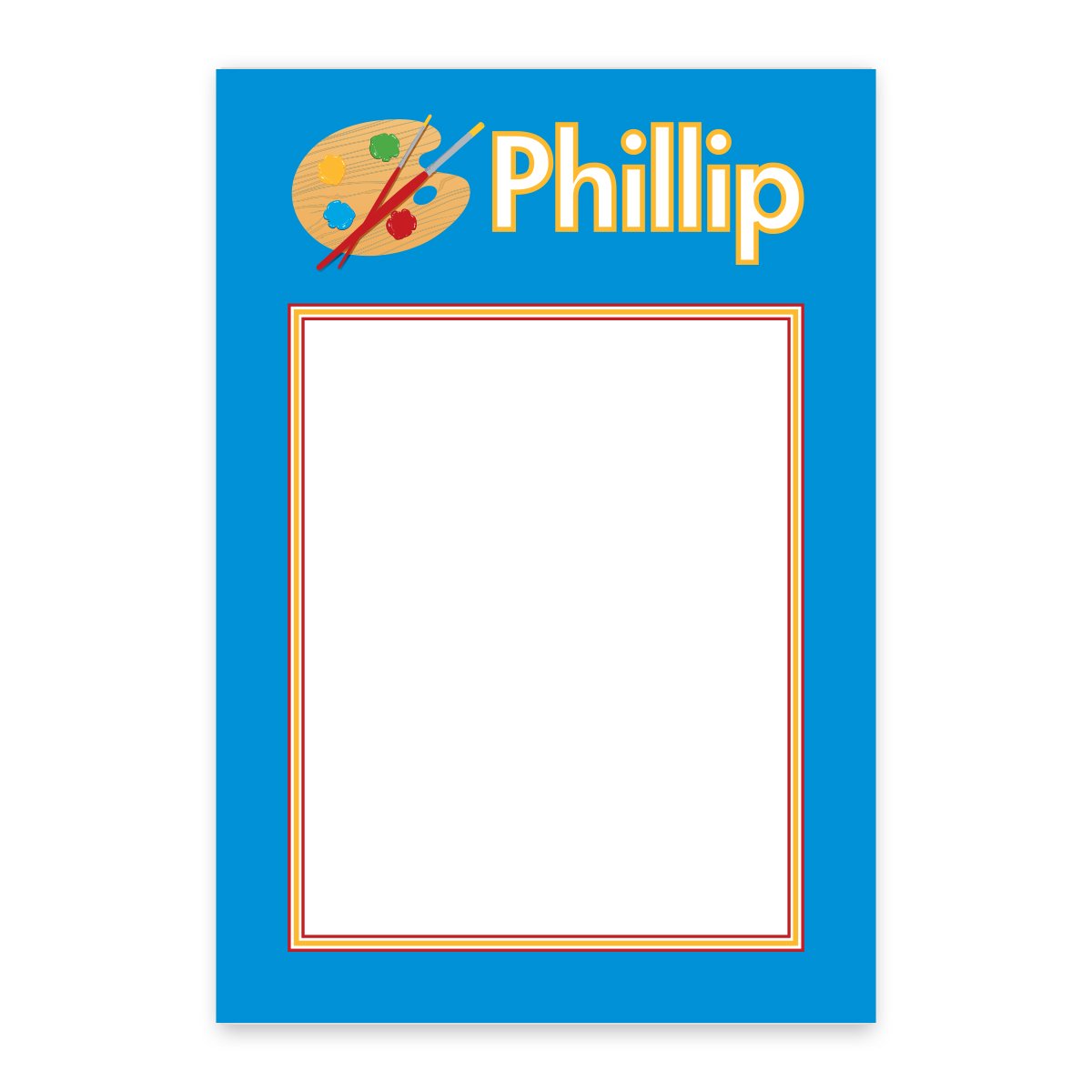 This notepad features a blue border adorned with an painter's palette at the top by the name. It is available in either 50 or 100 sheets per notepad.