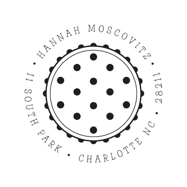 Decorate your personal stationery, books, letters, gift tags, return address stamps or embossers or for whatever other things you can think of, with these unique designer self-inking stamps or embossers. Add your personalized text to the outer circle of the design that frames a polka dotted pattern in the center. Each stamp comes with one black ink cartridge which allows approximately 8,000 to 10,000 impressions. You can elect to order additional color ink cartridges for $10.95 each.